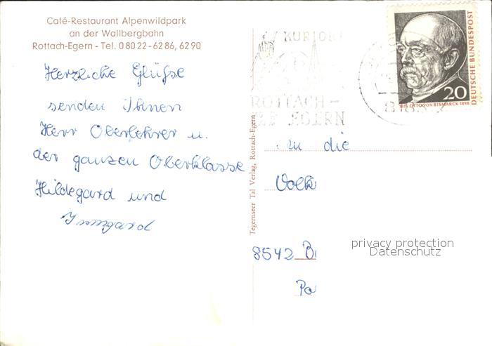 72279876 alte Postkarte Rottach-Egern Cafe Restaurant Alpenwildpark Wallbergbahn postalisch gelaufen Erhaltung siehe scans KatCode: 11110009182129