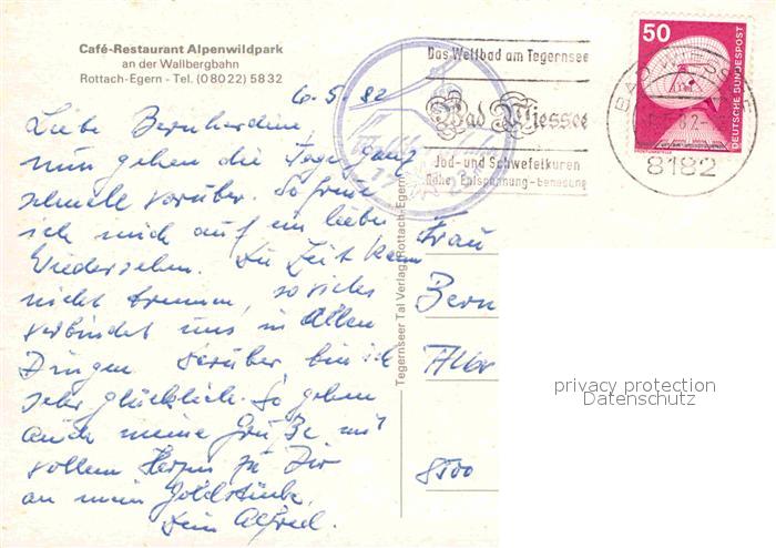 72698972 alte Postkarte Rottach-Egern Cafe Restaurant Alpenwildpark Wallbergbahn postalisch gelaufen Erhaltung siehe scans [KathaD79] KatCode: 11110009182129