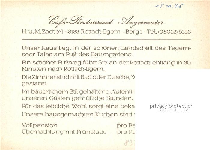 73056812 Rottach-Egern Cafe Restaurant Angermaier postalisch nicht gelaufen Werbekarte (keine Postkarte) Erhaltung siehe scans [WerneD78] KatCode: 11110009182129