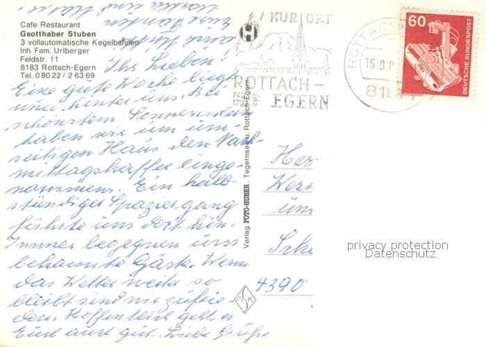 73776019 alte Postkarte Rottach-Egern Cafe Restaurant Gsotthaber Stuben postalisch gelaufen Erhaltung siehe scans [WerneD78] KatCode: 11110009182129