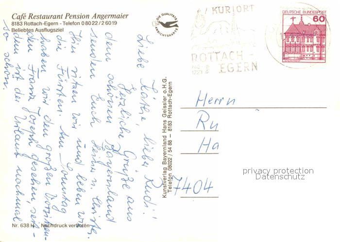 72913741 alte Postkarte Rottach-Egern Cafe Restaurant Pension Angermaier postalisch gelaufen Erhaltung siehe scans [LiesaD40] KatCode: 11110009182129