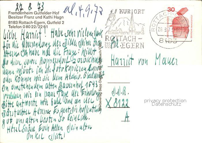 72512795 alte Postkarte Rottach-Egern Fremdenheim Gutfelder Hof postalisch gelaufen Erhaltung siehe scans KatCode: 11110009182129