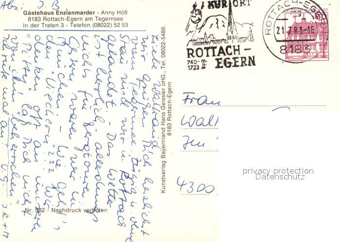 73542841 alte Postkarte Rottach-Egern Gaestehaus Enzianmarder Garten postalisch gelaufen Erhaltung siehe scans [FriedD77] KatCode: 11110009182129