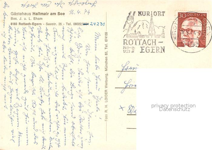 73641248 alte Postkarte Rottach-Egern Gaestehaus Haltmair am See Gastraeume Treppenaufgang postalisch gelaufen Erhaltung siehe scans [WerneD78] KatCode: 11110009182129