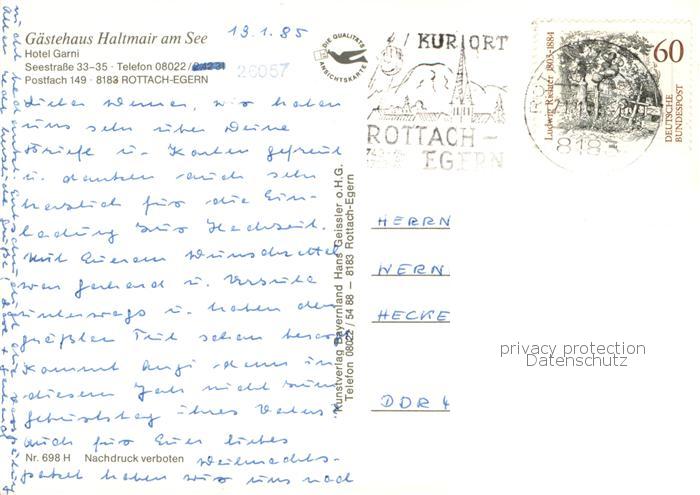73757841 alte Postkarte Rottach-Egern Gaestehaus Haltmair am Tegernsee Fahne postalisch gelaufen Erhaltung siehe scans [FriedD77] KatCode: 11110009182129