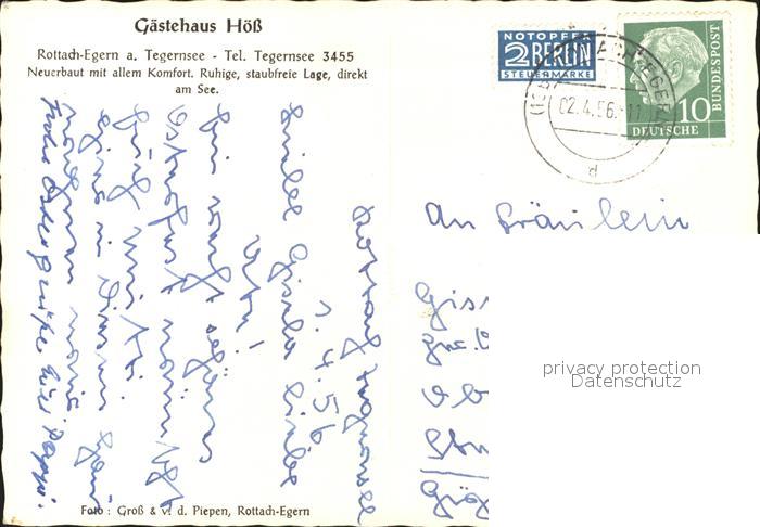 71997440 alte Postkarte Rottach-Egern Gaestehaus Hoess postalisch gelaufen Erhaltung siehe scans KatCode: 11110009182129