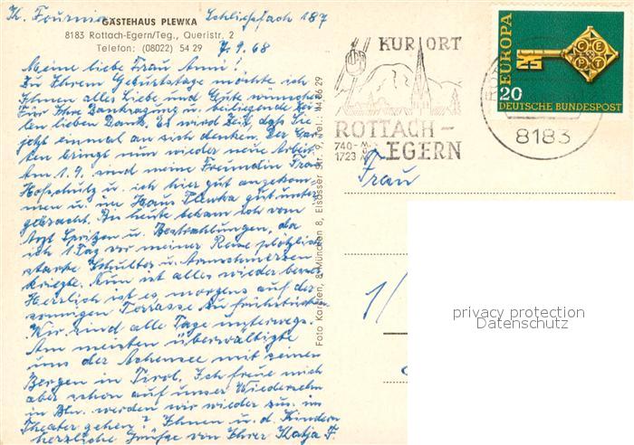 73650944 alte Postkarte Rottach-Egern Gaestehaus Plewka Terrasse Seepanorama postalisch gelaufen Erhaltung siehe scans [WerneD78] KatCode: 11110009182129
