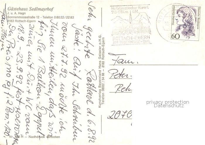 73634942 alte Postkarte Rottach-Egern Gaestehaus Sedlmayrhof postalisch gelaufen Erhaltung siehe scans [WerneD78] KatCode: 11110009182129