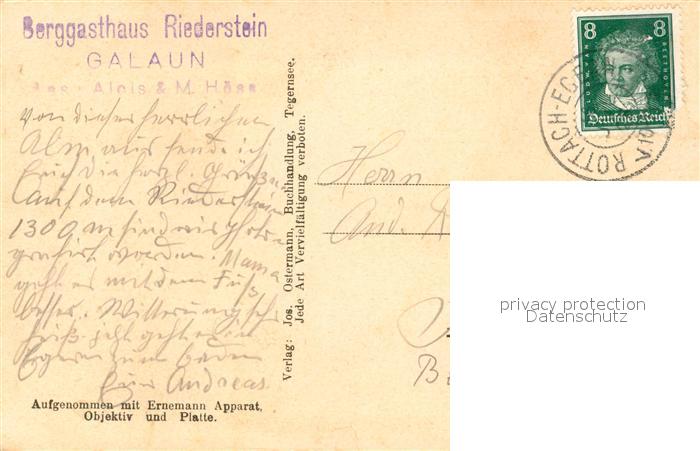 73559018 alte Postkarte Rottach-Egern Galaun mit Riederstein postalisch gelaufen Erhaltung siehe scans [LiesaD40] KatCode: 11110009182129
