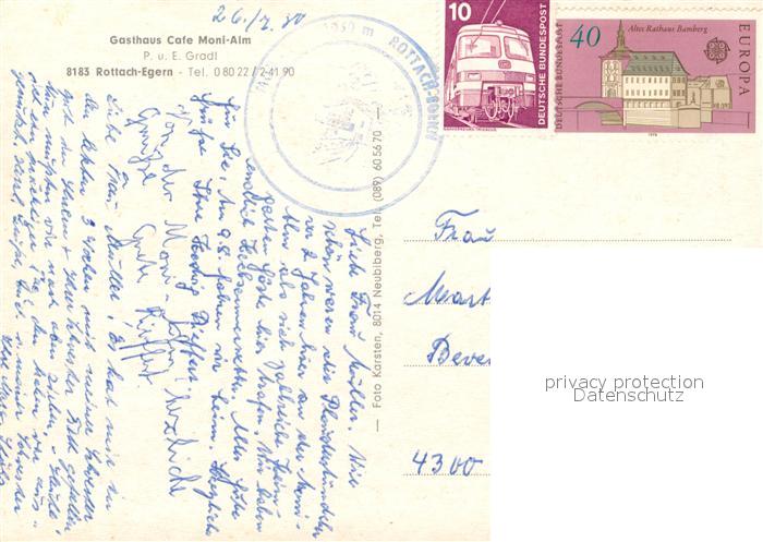 73323378 alte Postkarte Rottach-Egern Gasthaus Cafe Moni Alm Terrasse postalisch gelaufen Erhaltung siehe scans [FriedD77] KatCode: 11110009182129