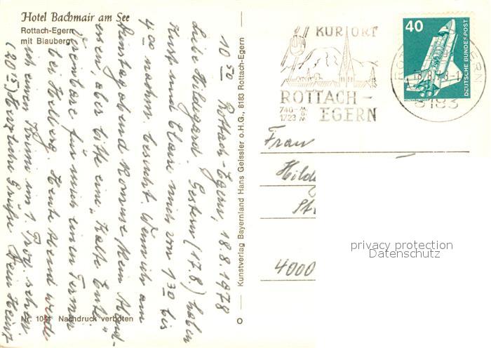 73656866 alte Postkarte Rottach-Egern Hotel Bachmair am Tegernsee mit Blauberg Mangfallgebirge postalisch gelaufen Erhaltung siehe scans [FriedD77] KatCode: 11110009182129