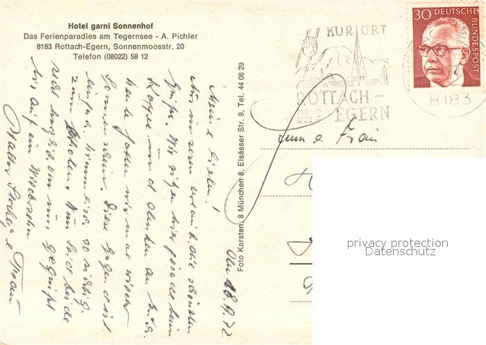 73641247 alte Postkarte Rottach-Egern Hotel garni Sonnenhof Gastraeume postalisch gelaufen Erhaltung siehe scans [WerneD78] KatCode: 11110009182129