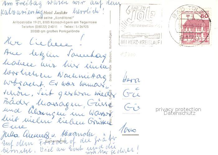 73648589 alte Postkarte Rottach-Egern Hotel Jaedicke Kuchentheke postalisch gelaufen Erhaltung siehe scans [WerneD78] KatCode: 11110009182129