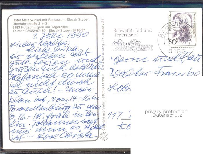 72135604 alte Postkarte Rottach-Egern Hotel Malerwinkel Restaurant Slezak Stuben postalisch gelaufen Erhaltung siehe scans KatCode: 11110009182129