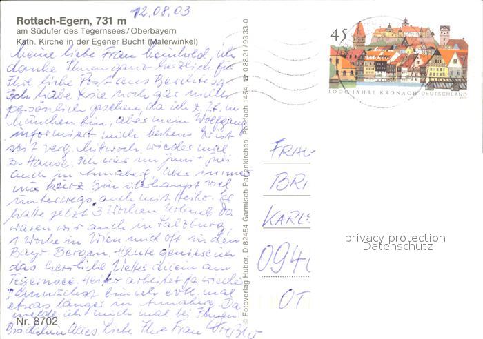 72368756 alte Postkarte Rottach-Egern Katholische Kirche Egener Bucht postalisch gelaufen Erhaltung siehe scans KatCode: 11110009182129