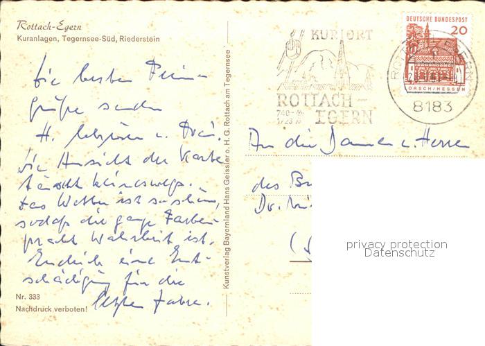 72579043 alte Postkarte Rottach-Egern Kuranlagen Tegernsee Riederstein postalisch gelaufen Erhaltung siehe scans [LiesaD40] KatCode: 11110009182129