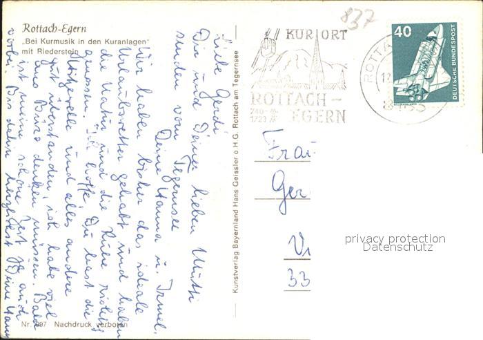 72603586 alte Postkarte Rottach-Egern Kurmusik Kuranlagen mit Riederstein postalisch gelaufen Erhaltung siehe scans [FriedD77] KatCode: 11110009182129