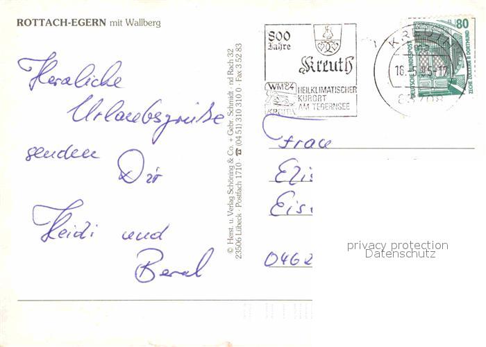72859256 alte Postkarte Rottach-Egern mit Kirche und Wallberg postalisch gelaufen Erhaltung siehe scans [WerneD78] KatCode: 11110009182129