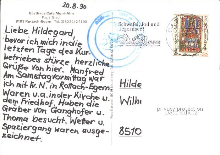 72309502 alte Postkarte Rottach-Egern Moni- Alm postalisch gelaufen Erhaltung siehe scans KatCode: 11110009182129
