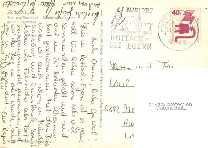 73305850 alte Postkarte Rottach-Egern See Warmbad postalisch gelaufen Erhaltung siehe scans [KathaD81] KatCode: 11110009182129
