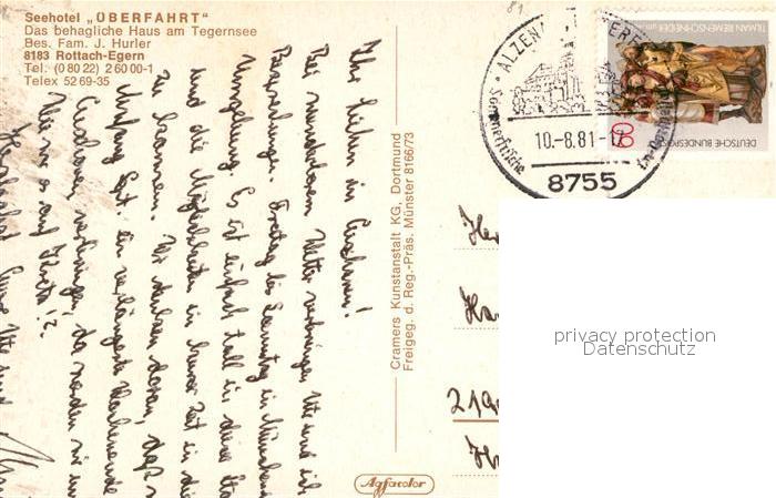 72961947 alte Postkarte Rottach-Egern Seehotel ueberfahrt am Tegernsee Fliegeraufnahme postalisch gelaufen Erhaltung siehe scans [FriedD77] KatCode: 11110009182129