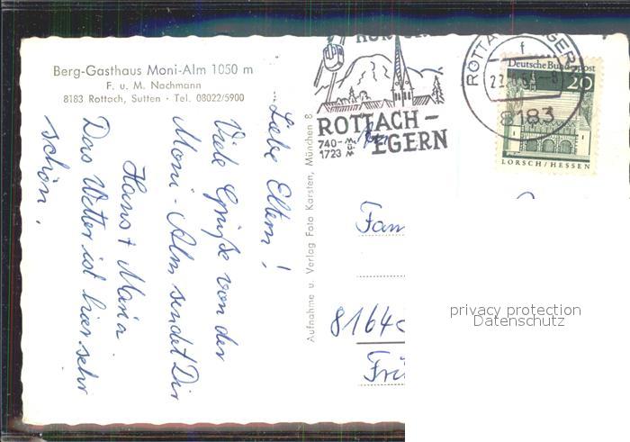 72134846 alte Postkarte Rottach-Egern Sutten Berggasthaus Moni-Alm postalisch gelaufen Erhaltung siehe scans KatCode: 11110009182129