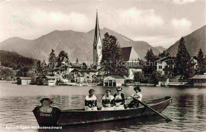 74149621 alte Postkarte Rottach-Egern Tegernsee Bayern Ruderboot Trachten Ansicht vom See aus Blick gegen Bodenschneid postalisch gelaufen Erhaltung siehe scans [FriedD77] KatCode: 11110009182129