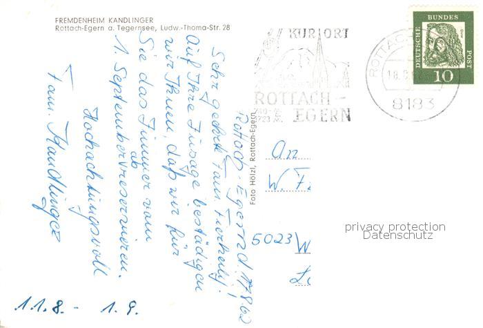 73857749 Rottach-Egern Tegernsee Fremdenheim Kandlinger postalisch gelaufen Erhaltung siehe scans [FriedD77] alte Postkarte Frie Katcode 11110009182129