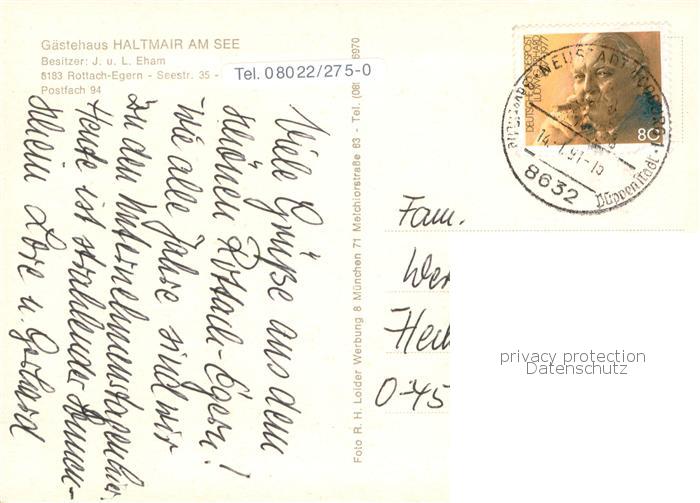 73751611 alte Postkarte Rottach-Egern Tegernsee Gaestehaus Haltmair am See Panorama postalisch gelaufen Erhaltung siehe scans [WerneD78] KatCode: 11110009182129