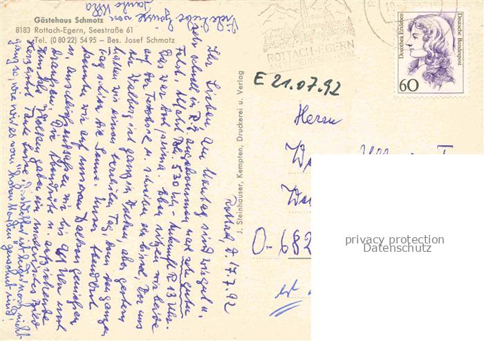 74039666 alte Postkarte Rottach-Egern Tegernsee Gaestehaus Schwarz postalisch gelaufen Erhaltung siehe scans [WerneD78] KatCode: 11110009182129