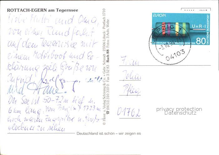 72352861 alte Postkarte Rottach-Egern Tegernsee Teilansichten Bootsanlegestelle Kirche postalisch gelaufen Erhaltung siehe scans KatCode: 11110009182129
