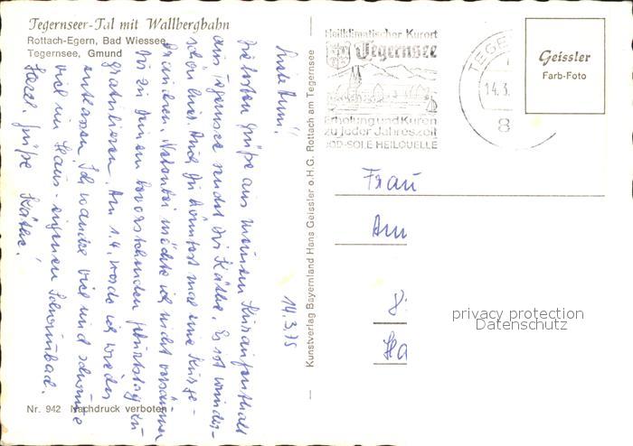 71899851 alte Postkarte Rottach-Egern Tegernseer Tal mit Wallbergbahn Bad Wiessee Gmund postalisch gelaufen KatCode: 11110009182129