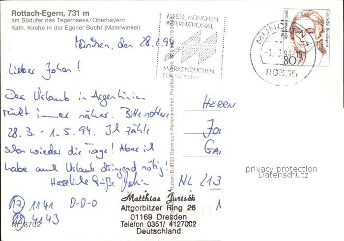 72409225 alte Postkarte Rottach-Egern Tegernseeufer mit Kirche postalisch gelaufen Erhaltung siehe scans KatCode: 11110009182129
