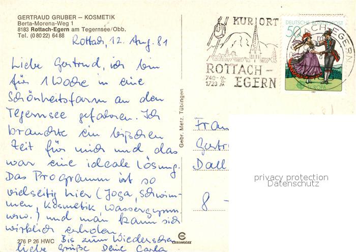 73152519 alte Postkarte Rottach-Egern Teilansicht mit Kurhotels Pensionen postalisch gelaufen Erhaltung siehe scans [FriedD77] KatCode: 11110009182129