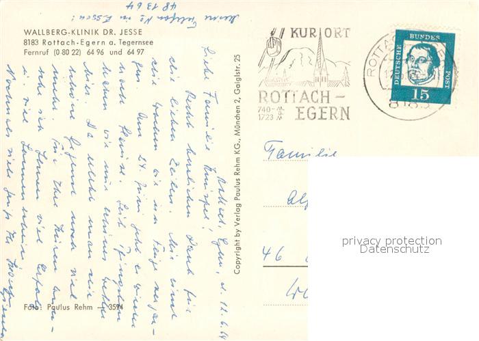 73653105 alte Postkarte Rottach-Egern Wallberg Klinik Dr Jesse postalisch gelaufen Erhaltung siehe scans [WerneD78] KatCode: 11110009182129
