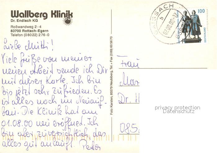 73659403 alte Postkarte Rottach-Egern Wallberg Klinik Sanatorium Hallenbad postalisch gelaufen Erhaltung siehe scans [FriedD77] KatCode: 11110009182129