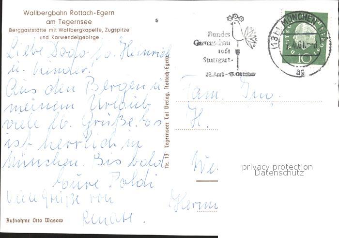 72091928 alte Postkarte Rottach-Egern Wallbergbahn Berggaststaette Wallbergkapelle Zugspitze Karwendelgebirge postalisch gelaufen Erhaltung siehe scans KatCode: 11110009182129