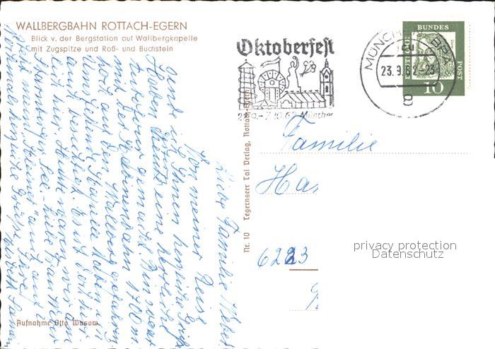 72552656 alte Postkarte Rottach-Egern Wallbergbahn Bergstation Wallbergkapelle Zugspitze Ross und Buchstein postalisch gelaufen Erhaltung siehe scans [WerneD78] KatCode: 11110009182129