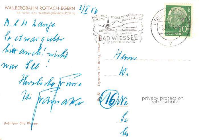 73098526 alte Postkarte Rottach-Egern Wallbergbahn Terrasse postalisch gelaufen Erhaltung siehe scans [KathaD81] KatCode: 11110009182129