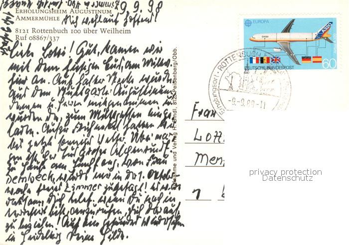 73739298 alte Postkarte Rottenbuch Oberbayern Erholungsheim Augustinum Ammermuehle Gastraeume Panorama postalisch gelaufen Erhaltung siehe scans [WerneD78] KatCode: 11110009190145