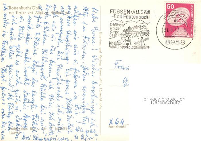 73658613 alte Postkarte Rottenbuch Oberbayern mit Tiroler und Allgaeuer Hochgebirge Fliegeraufnahme postalisch gelaufen Erhaltung siehe scans [FriedD77] KatCode: 11110009190145