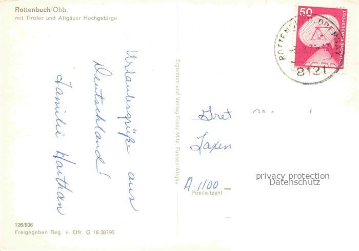 74099668 alte Postkarte Rottenbuch Oberbayern Weilheim-Schongau Bayern Fliegeraufnahme mit Tiroler und Allgaeuer Hochgebirge postalisch gelaufen Erhaltung siehe scans [WerneD78] KatCode: 11110009190145