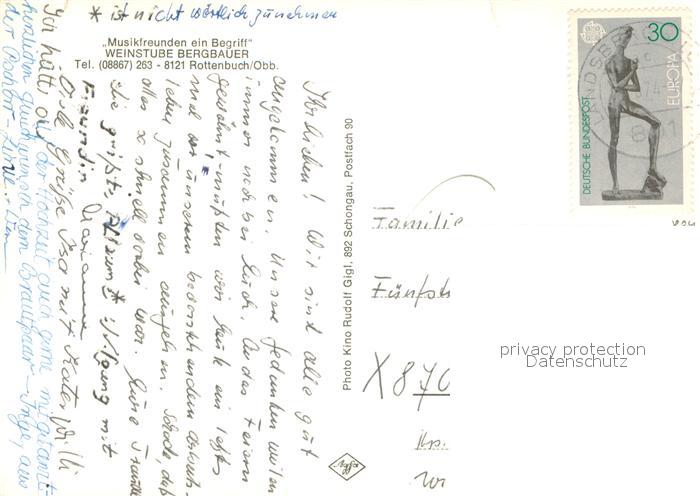 73641254 alte Postkarte Rottenbuch Oberbayern Weinstube Bergbauer Gastraeume Musikertrio postalisch gelaufen Erhaltung siehe scans [WerneD78] KatCode: 11110009190145