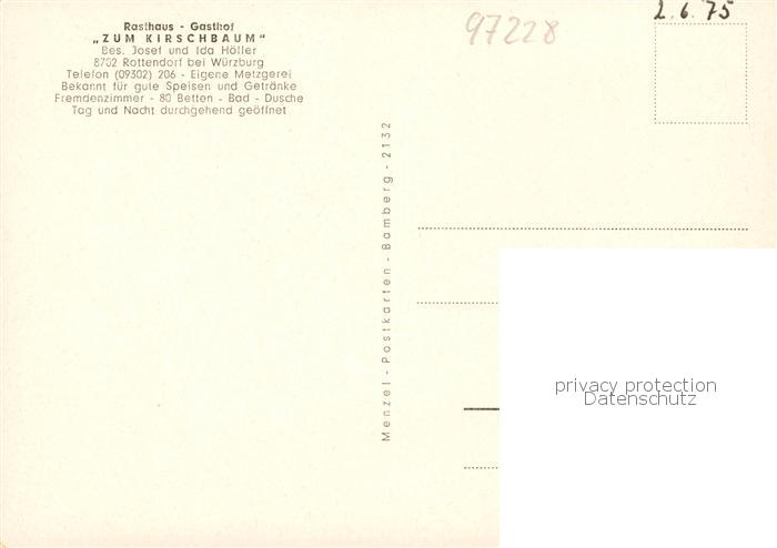 73867169 Rottendorf Wuerzburg Unterfranken Rasthaus Gasthof zum Kirschbaum Restaurant postalisch nicht gelaufen Erhaltung siehe scans [FriedD77] KatCode: 11110009679185
