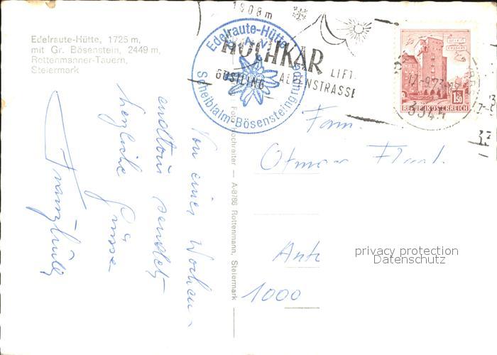 72426192 alte Postkarte Rottenmann Steiermark Edelraute Huette Grosser Boesenstein postalisch gelaufen Erhaltung siehe scans KatCode: 11390222061238