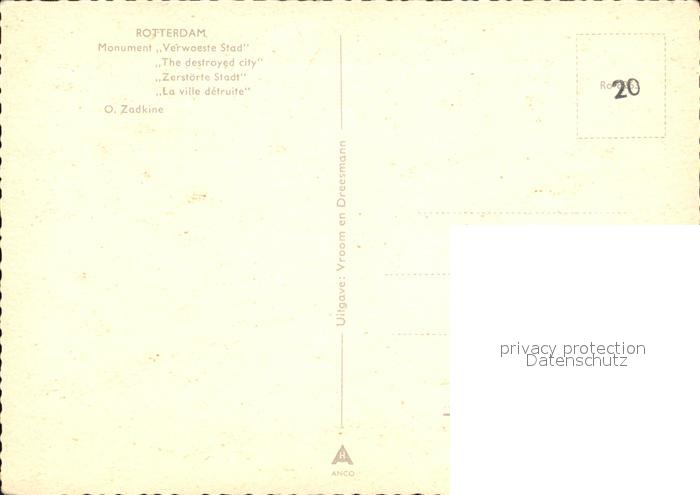 Rotterdam Denkmal Zerstoerte Stadt postalisch nicht gelaufen Erhaltung siehe scans