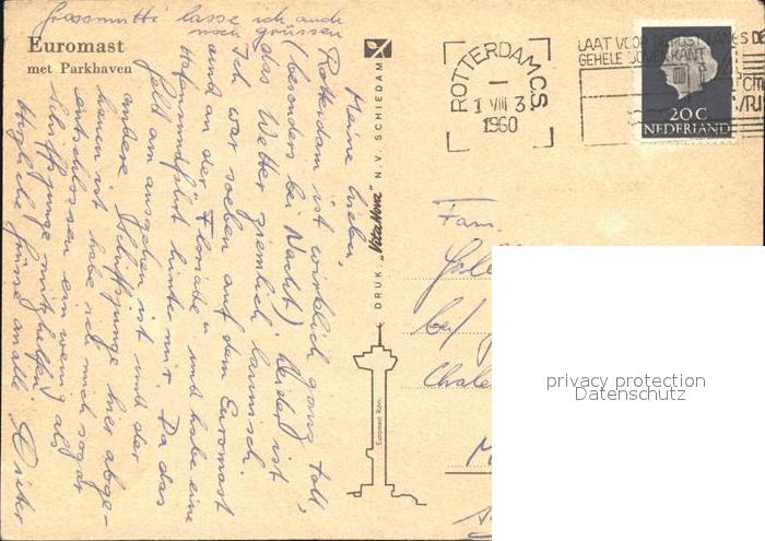 old postcard Rotterdam Euromast Hafen postalisch gelaufen Erhaltung siehe scans