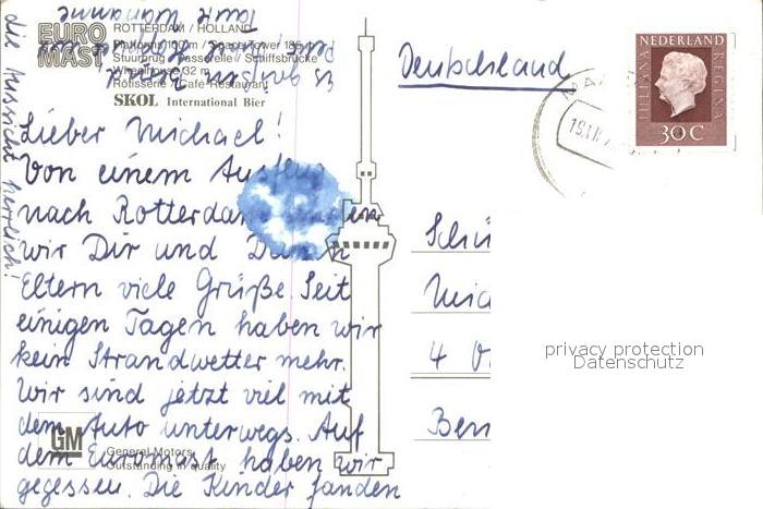 old postcard Rotterdam Euromast Schiffsbr?cke postalisch gelaufen Erhaltung siehe scans [KathaD79]