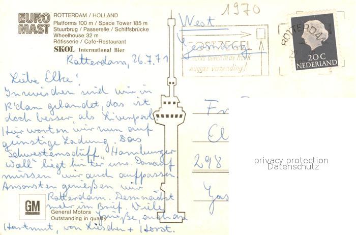 old postcard Rotterdam Fliegeraufnahme postalisch gelaufen Erhaltung siehe scans [KathaD81]
