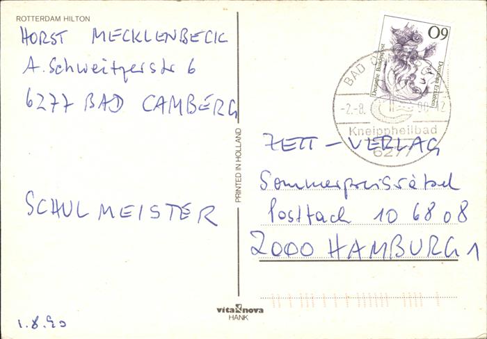 old postcard Rotterdam Hilton Hotel Font?ne postalisch gelaufen Erhaltung siehe scans